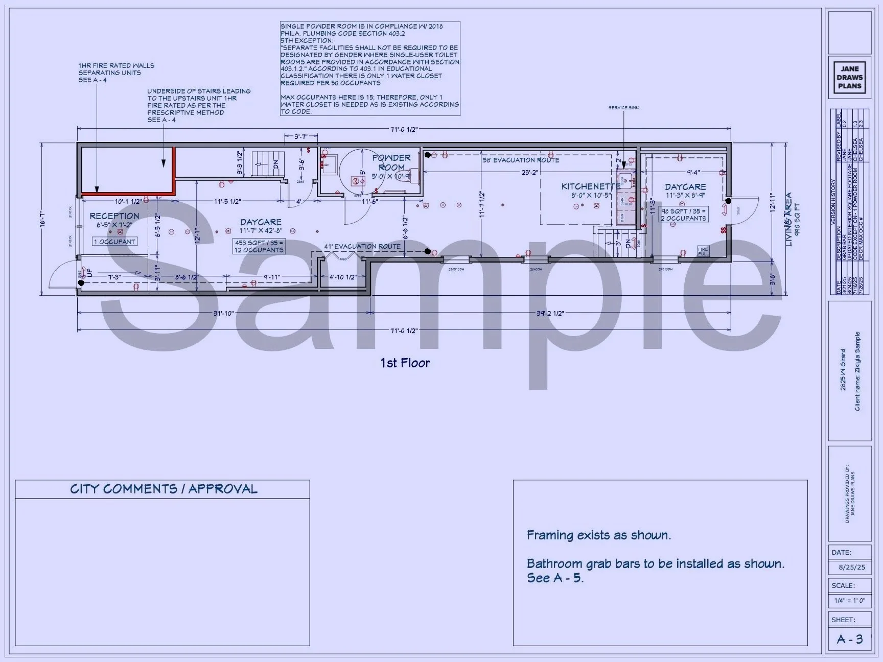 Have a commercial space in need of CO plans? Need occupancy limits calculated? Looking to legalize a daycare, a restaurant, or another commercial space? Need help imagining the flow of the space?